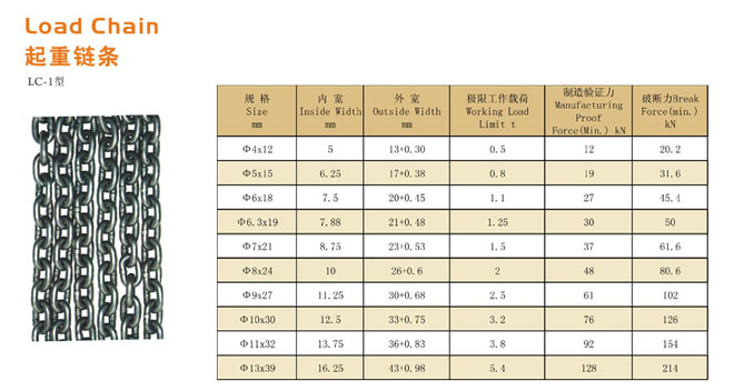 本款鏈條是型號為手拉鏈條LC-1型的起重專用鏈條。